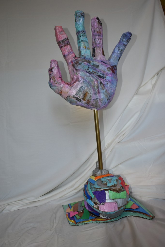 This page is home to images of my work, separated into broad categories. Pieces range from traditional paintings to found-object sculptures, from papier–mâché masks to carboard puppets. I love to collect things as much as I love to create them, and I frequently use found objects and recycled materials in my work.